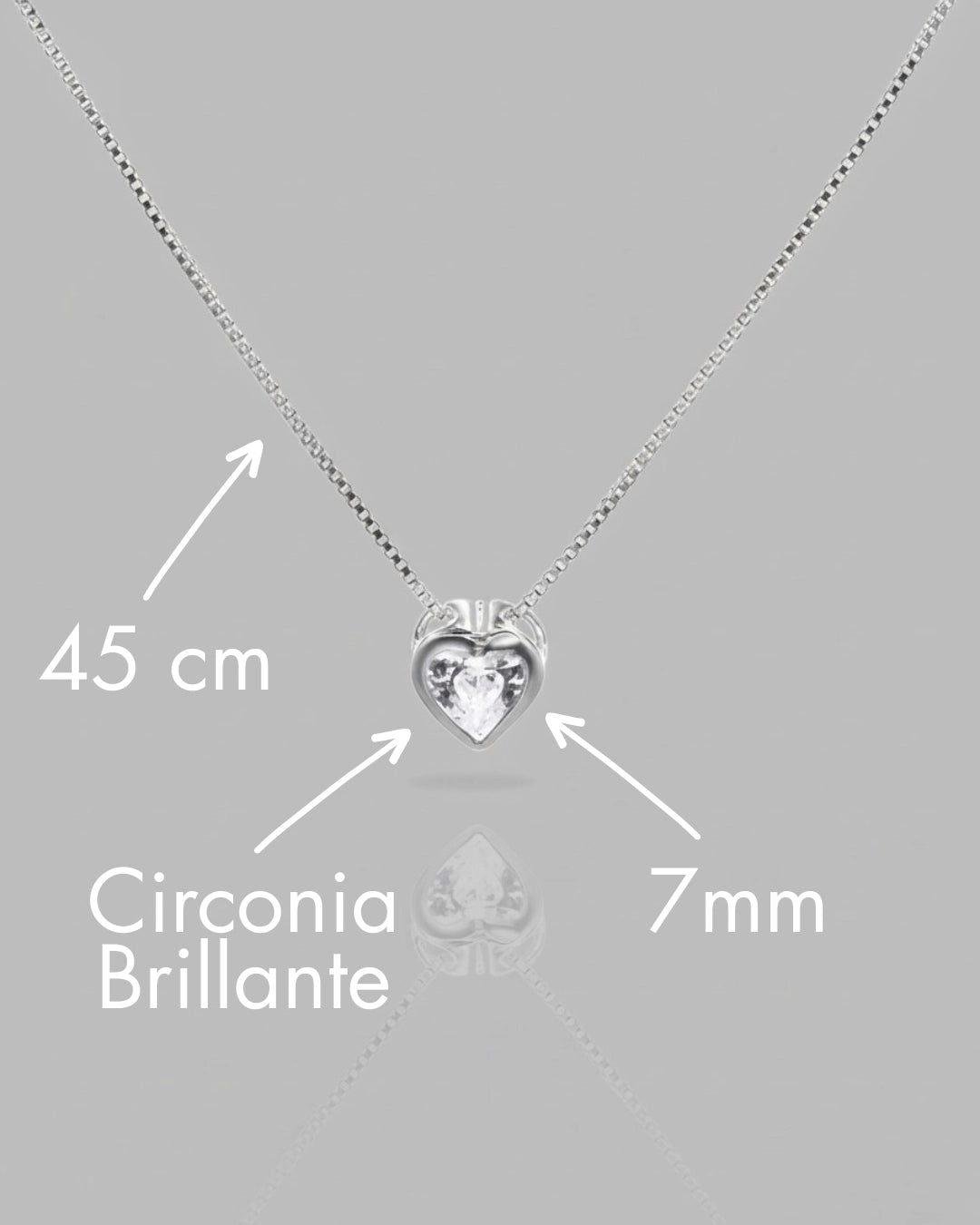 Elaborado con Plata S925 de la más alta calidad, el colgante presenta un delicado corazón que enmarca un cristal de Circonia Cúbica de corte brillante. La cadena, de estilo veneciano, es fina y resistente, asegurando que el corazón se pose de forma sutil y elegante sobre tu pecho.
