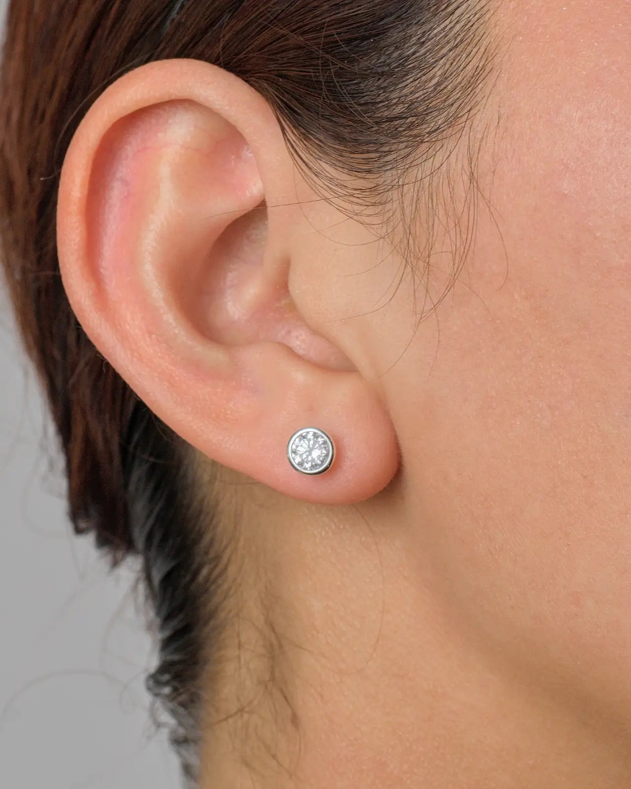 Fabricado en Plata, cada pieza presenta una circonia de corte brillante protegida por un engaste de bisel (marco liso de plata). Este tipo de montura no solo asegura la piedra, sino que crea un efecto visual de mayor amplitud, logrando que el brillo sea el protagonista absoluto.